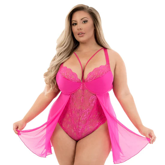 Pink isn’t just a color, it’s an attitude—so step into this two-in-one piece and don’t hold back. With gorgeous, curve-hugging lace and a flattering mesh overlay, teddy meets babydoll in a hot style you’ll want to wear night after night.