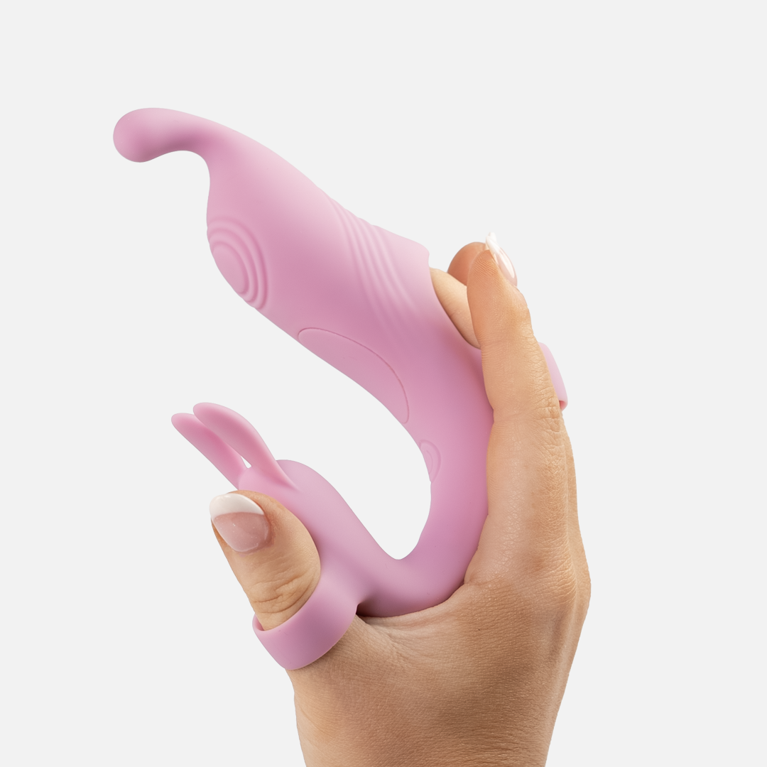 Wearable Design: Two silicone loops turn any hand into a rabbit vibrator.
